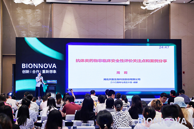 天勤生物執(zhí)行副總裁周莉博士在【抗體藥物開(kāi)發(fā)前沿】分論壇上也帶來(lái)了主題為“抗體藥物非臨床安全性評(píng)價(jià)關(guān)注點(diǎn)和案例分享”的精彩演講。周莉博士著重介紹了抗體藥物非臨床安全性評(píng)價(jià)的關(guān)注點(diǎn),從種屬選擇、組織交叉反應(yīng)、免疫原性、免疫毒性、生殖毒性、PK/PD六個(gè)方面進(jìn)行了解讀,并通過(guò)實(shí)際案例展示了天勤生物在抗體藥物非臨床安全研究中的經(jīng)驗(yàn)。周莉博士的報(bào)告內(nèi)容翔實(shí)、分析透徹,彰顯了天勤生物在非臨床安全研究領(lǐng)域的深厚底蘊(yùn)與創(chuàng)新能力。